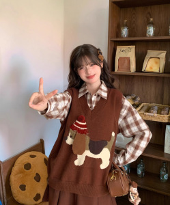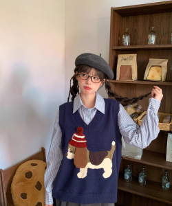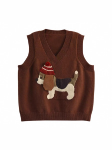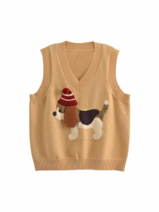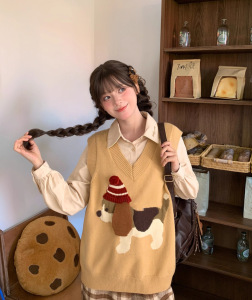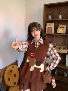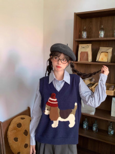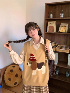 2025年秋季新款减龄针织马甲女毛衣背心复古卡通小狗套头外穿叠穿