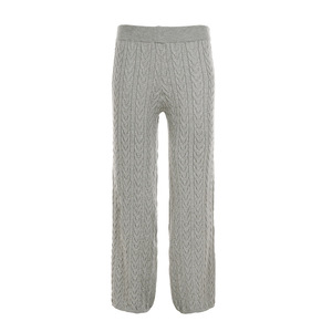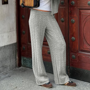 2025秋冬时尚保暖毛织长裤辣妹肌理感麻花微喇阔腿灰色休闲裤批发