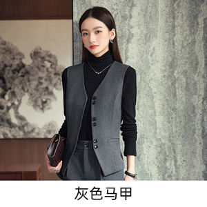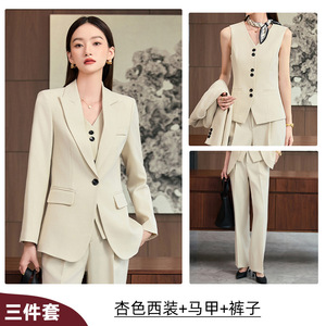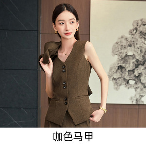 高端咖色毛呢职业西服套装女秋冬2025新款气质通勤正装马甲西服三
