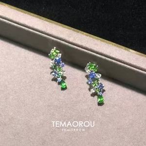 韩国新款绿色水晶几何项链耳环手链套装轻奢高级感甜美小清新耳钉
