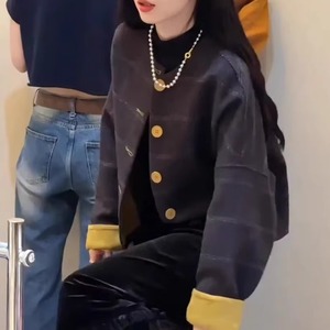 小个子韩系复古格子短款外套2025秋冬新款早秋夹克小香风上衣女装
