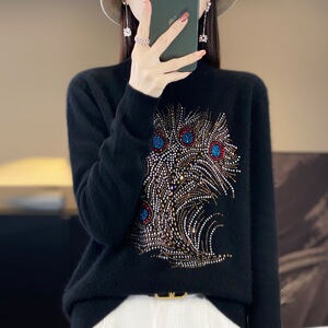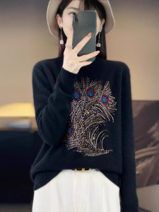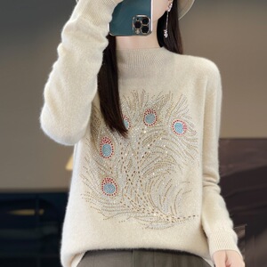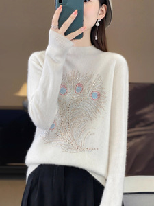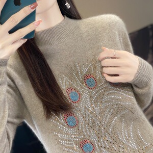 2025秋冬新款半高领Y毛衫羽毛烫钻女纯色内搭亲肤柔软打底衫7319