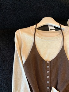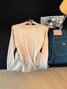 早秋新款韩系慵懒风圆领百搭假两件挂脖长袖系带长袖针织衫