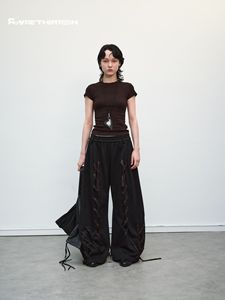 十三行R13秋新款编织绑带弯刀裤阔腿裤25AW