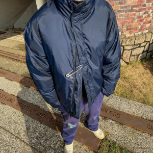 潮牌25fw毒家秋冬新款字母刺绣大曲别针双面穿工装夹克羽绒服外套