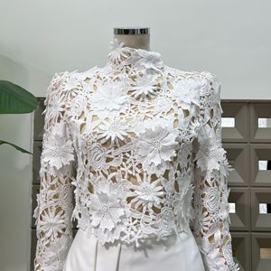 亚马逊绝美立体花朵水溶蕾丝套头短款上衣+蝴蝶结包臀白色半裙女