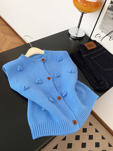 韩系高级感蓝色立体毛球针织马甲女秋季时尚气质叠穿无袖背心上衣