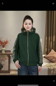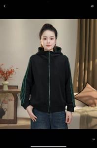 25秋季新款时尚条纹纯色拼接连帽外套女休闲百搭保暖休闲百搭上衣