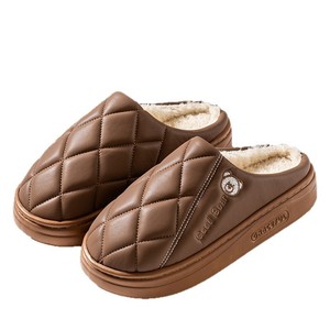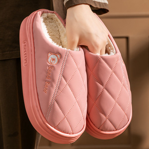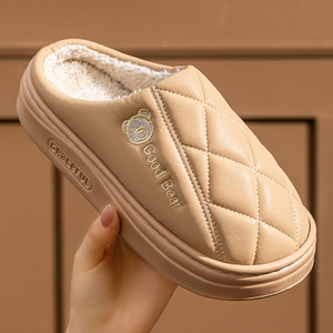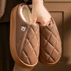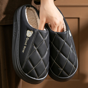 新款pu皮面棉拖鞋女防水耐脏保暖防滑棉拖鞋厚底防滑居家棉拖鞋男