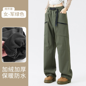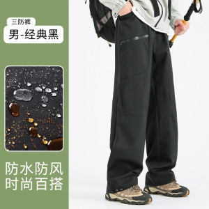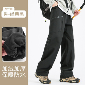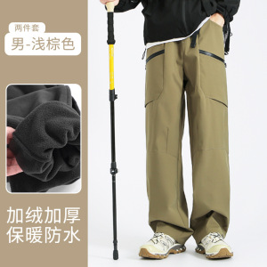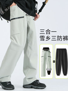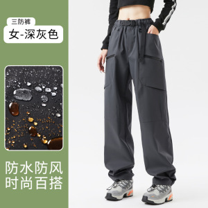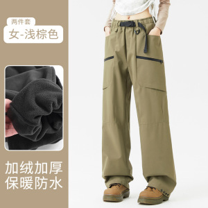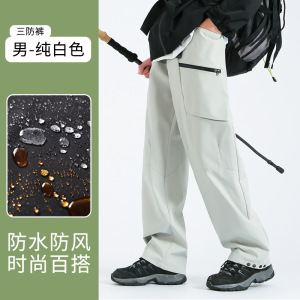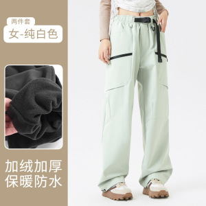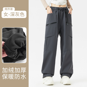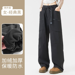 软壳登山裤女防水冲锋裤三合一秋冬哈尔滨雪乡防寒加绒保暖滑雪裤