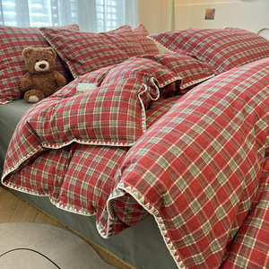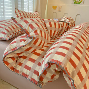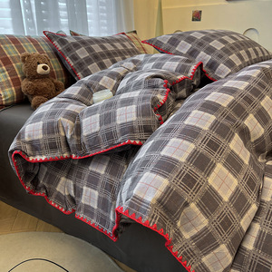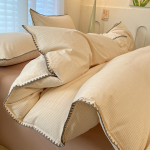 磨毛贝壳边四件套A类母婴级ins纯棉床单被套床上四件套