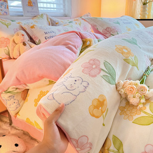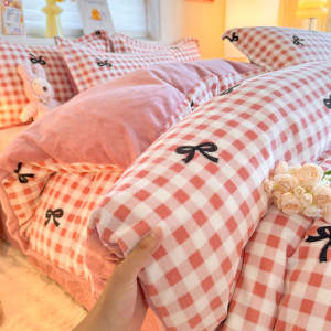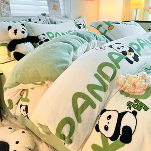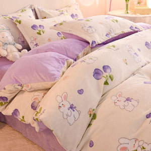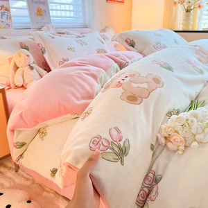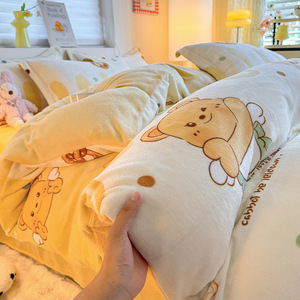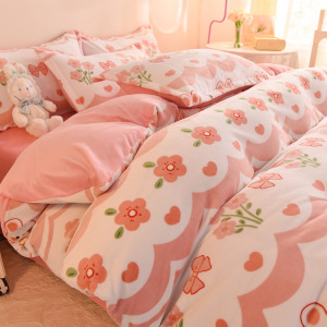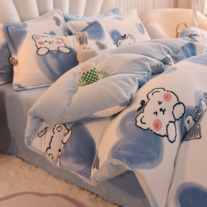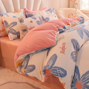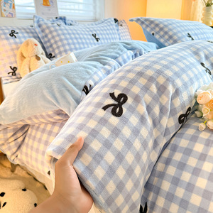 冬季加厚珊瑚绒牛奶绒四件套双面水晶法兰绒被套三件套厚床单被套