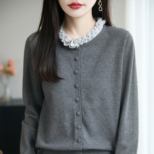 跨境2025秋季新款木耳边撞色宽松时尚针织衫上衣长袖安迪绒针织衫