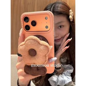 【壳+支架】瓦楞太阳米壳+粉毛绒花朵磁吸支架