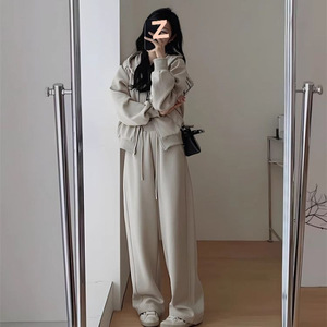 秋冬季休闲卫衣运动套装女时尚宽松大码显瘦减龄阔腿裤跑步两件套