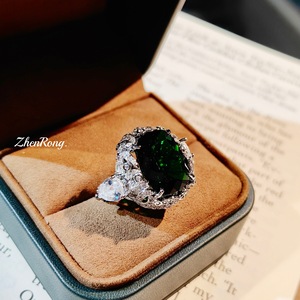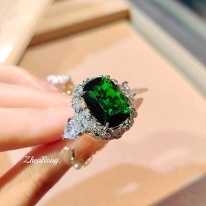 时尚气质培育极微油哥伦比亚木佐祖母绿戒指简约百搭鸽子蛋钻戒女