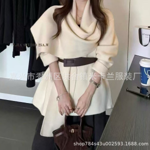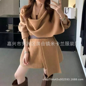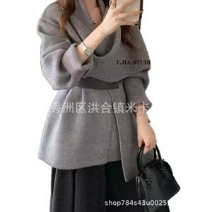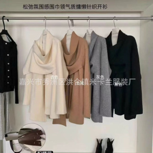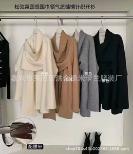 高品绵羊绒2025秋冬季新品针织开衫外套女长袖宽松腰带针织衫毛衣