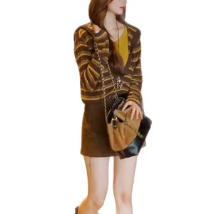 【针织衫】早秋款韩版气质通勤拼色条纹假两件连帽针织上衣99518