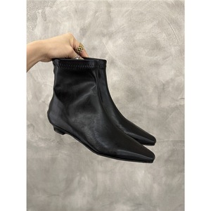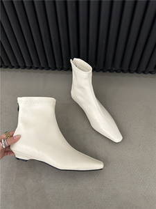 气质低跟方头加绒短靴女2025秋冬新款简约女靴子短筒靴法式瘦瘦靴