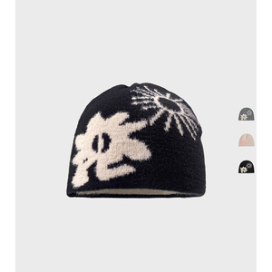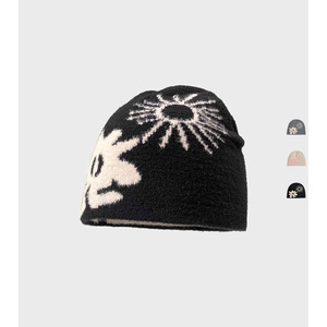 韩国ins小众同款提花毛绒针织帽男女秋冬保暖套头帽滑雪帽冷帽潮