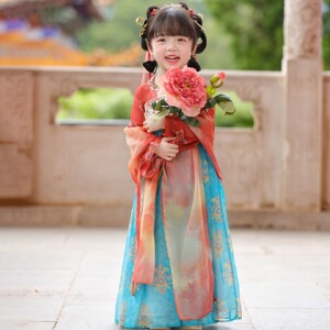 2025秋季新款女童汉服新款中国风儿童超仙古装长袖襦裙中秋连衣裙