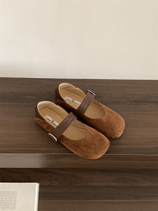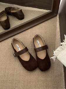 2025秋季新款法式复古圆头平底玛丽珍鞋女一字扣带浅口奶奶鞋单鞋