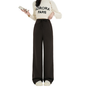 孕妇裤子秋冬外穿阔腿裤不勒肚子休闲直筒裤大码宽松抽绳松紧裤