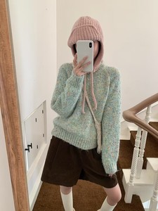 超好看绝美粉色花纱针织毛衣女秋冬新款时尚洋气宽松休闲慵懒上衣