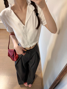 羊城故事 高级灰蕾丝垂感休闲裤女2025新款夏季拖地阔腿直筒裤