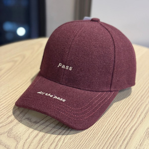 新款秋冬pass字母刺绣硬顶有型毛呢棒球帽子女显瘦减龄保暖鸭舌帽