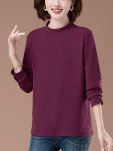 纯棉半高领打底衫女长袖t恤2025新款春秋大码洋气中老年妈妈上衣