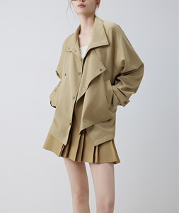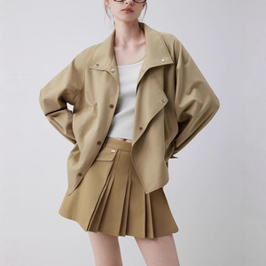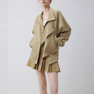 ELLE卡其色立领廓形短外套女2025秋季新款高级感时髦休闲独特上衣