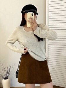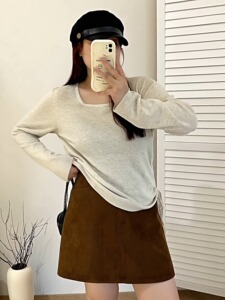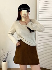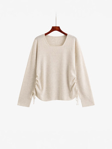 【包邮】大码女装休闲百搭方领上衣2025秋胖mm宽松侧边抽绳针织衫