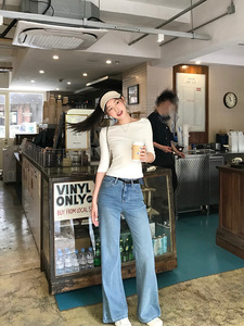 77store 微喇叭牛仔裤女2025新款高腰显瘦薄长裤直筒拖地阔腿裤子