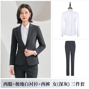 冬季商务灰色弹力西服套装工作服男女销售物业管理厚款西装三件套