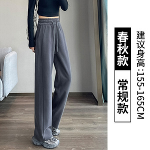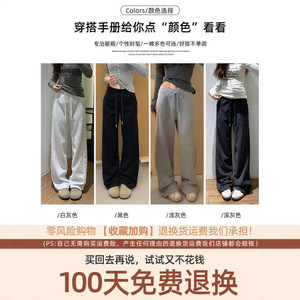 灰色lulu同款运动裤女春秋冬2025新款宽松直筒小个子窄版阔腿卫裤