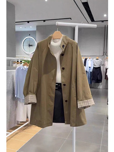 商场同款诗凡黎花续2025秋季新款通勤中长款立领风衣外套8160371