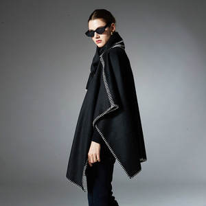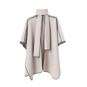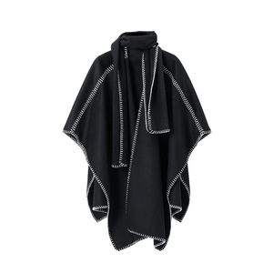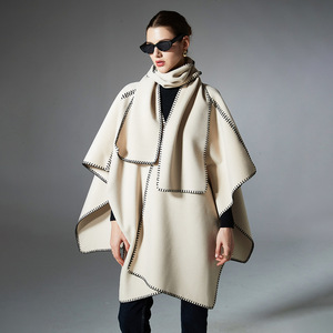 外贸欧美风女士披风春秋冬季新款时尚高级感纯色围巾披肩两件套