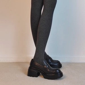 软皮版~厚底松糕懒人一脚蹬乐福鞋女复古英伦黑色百搭小皮鞋单鞋