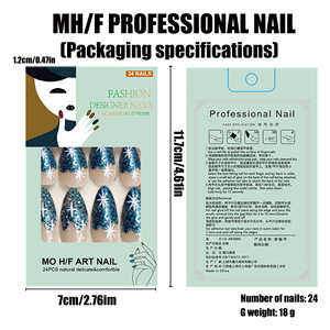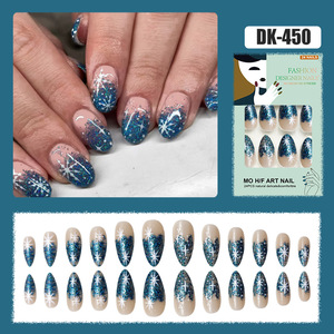 跨境新款圣诞节蓝白闪粉雪花冰冷氛围假指甲成品穿戴甲可拆卸美甲