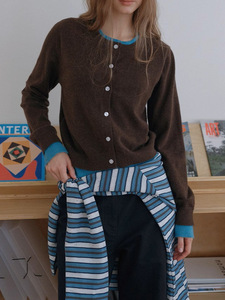 unique point撞色复古假两件毛针织开衫女秋季新款复古休闲毛衣