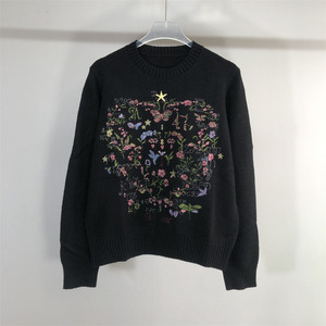 重工D心型花卉刺绣羊毛衫女打底衫可外穿长袖圆领套头针织毛衣冬
