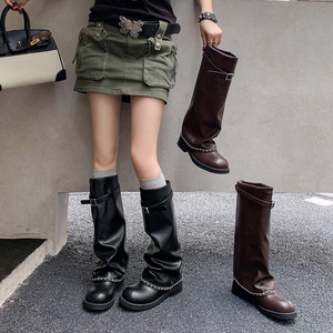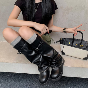 zijin家~美cry~香香风链条堆堆靴25秋冬新款显瘦好搭通勤裤管长靴