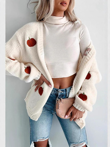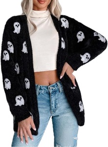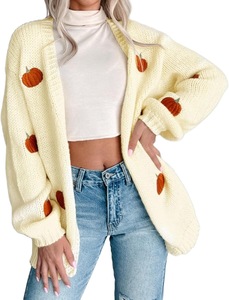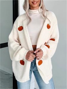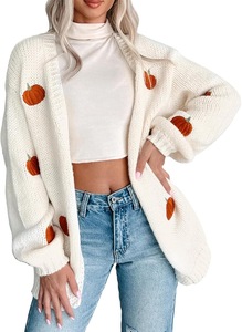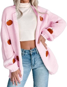 女士万圣节南瓜针织开衫欧美女装长袖开襟针织毛衣秋季外套上衣