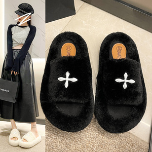 网红爆款毛毛拖鞋女坡跟外穿2025秋冬新款时尚高级感厚底一字棉拖