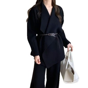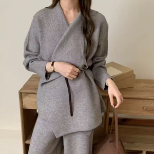 秋冬新款跨境外贸高级感气质针织套装女翻领毛慵懒衣阔腿裤两件套