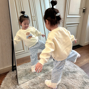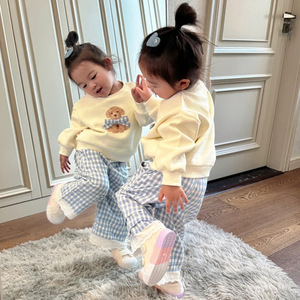 女童裤子早秋2025新款韩版儿童巨好看蕾丝格子阔腿裤小女孩休闲裤