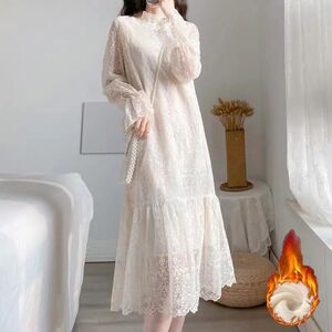 仙女内搭气质蕾丝连衣裙2025秋冬新款中长款加绒加厚打底长袖裙子