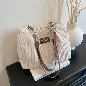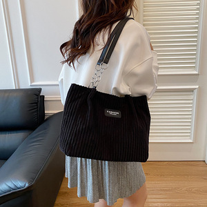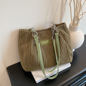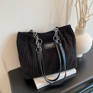 大容量灯芯条绒链条托特包女包2025新款秋季潮流单肩腋下包通勤包
