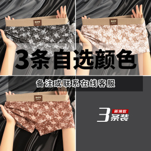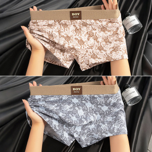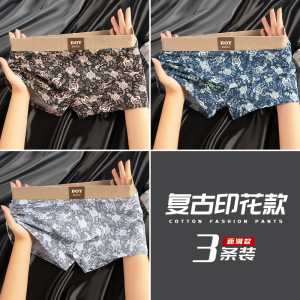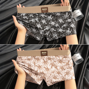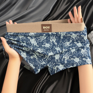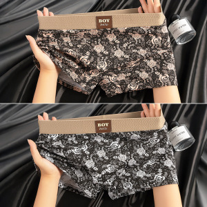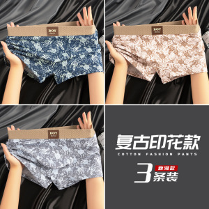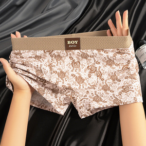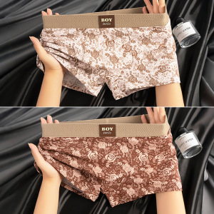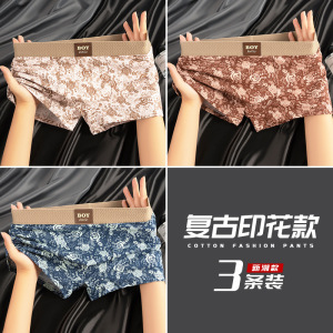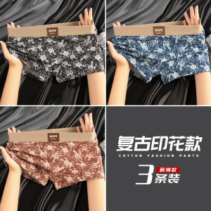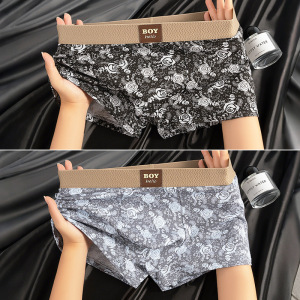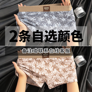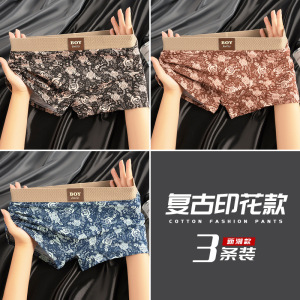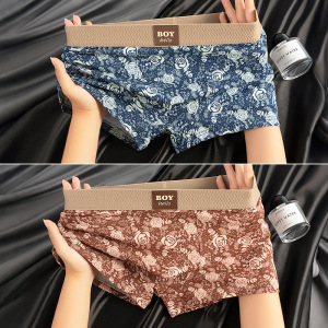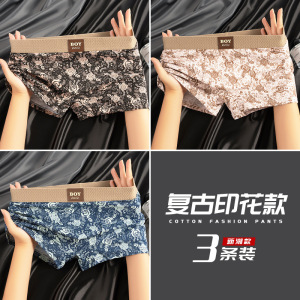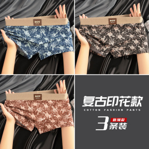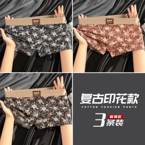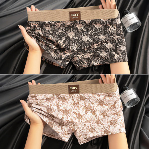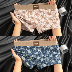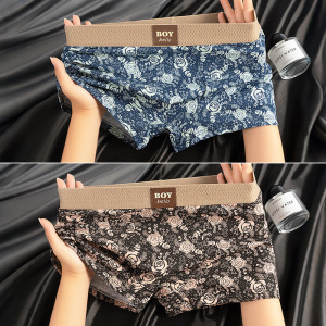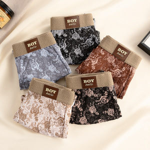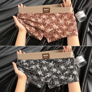 古典玫瑰印花男士内裤男纯棉舒适透气平角裤青年男个性四角短裤衩